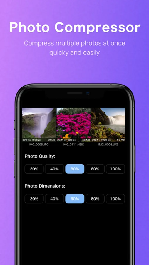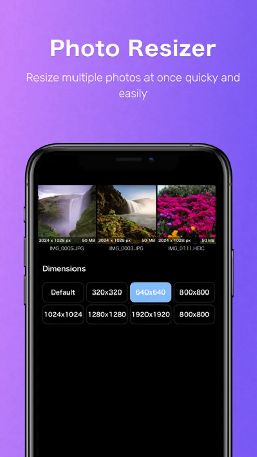 ResizePP can help you quickly compress photos, adjust photo size or resolution and convert photos to other format. Allows you to compress large photos into smaller size photos, and the loss of image quality is minimal or negligible.