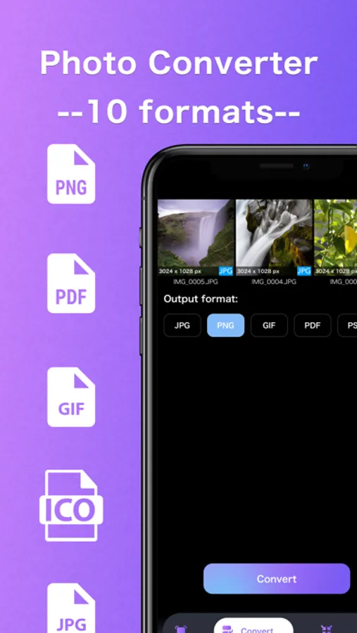* Convert photo format: support conversion between JPEG, JPG, PNG, WEBP, GIF, PSD, PDF,... format