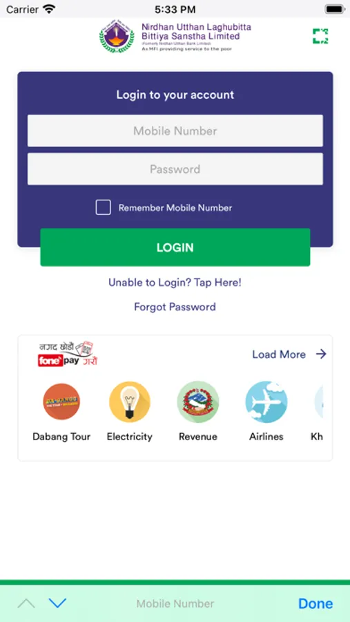 To be able to use this App, you first need to have a valid account maintained at Nirdhan Utthan Laghubitta, and you need to subscribe to the Nirdhan Mobile Banking Service.
