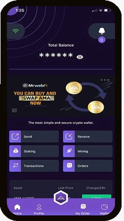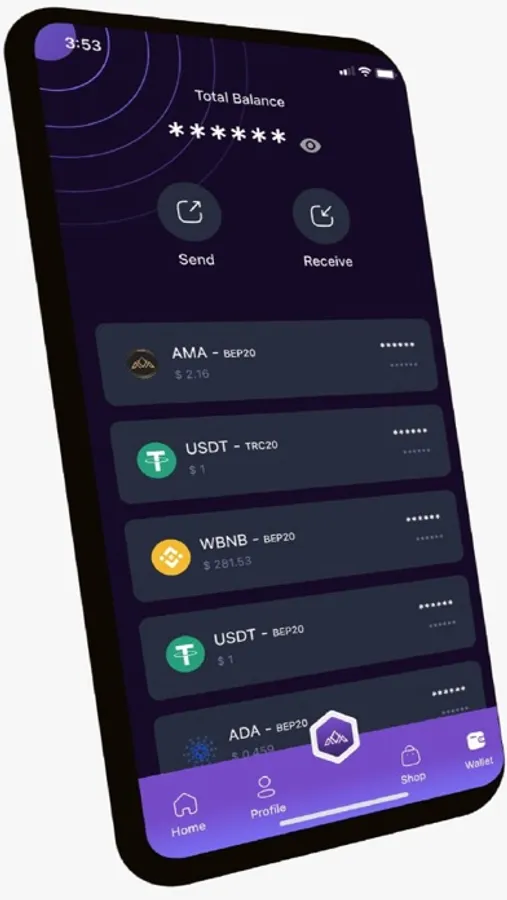 AMA Wallet is the official crypto wallet. You can send, receive and store Bitcoin and other cryptocurrencies and digital assets safely and securely with the AMA Wallet mobile app.