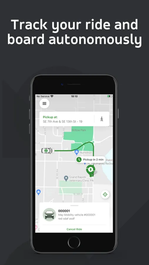 BOOK A RIDE: Using the May Mobility app, find the nearest pick up location and request a vehicle. Need a wheelchair-accessible vehicle? Make sure your app has “Wheelchair Accessibility” enabled.