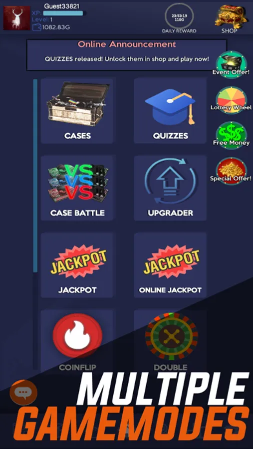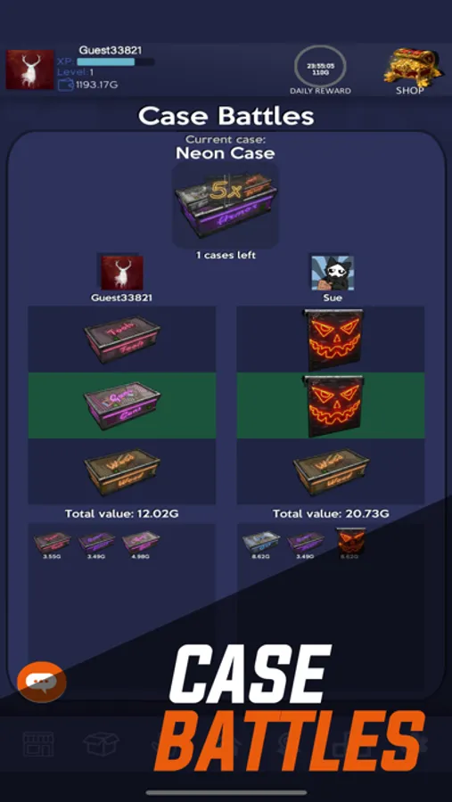 - Case Battles - Get more expensive items from cases than opponents and win!