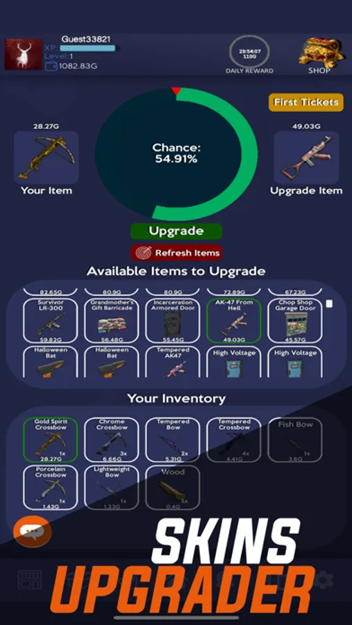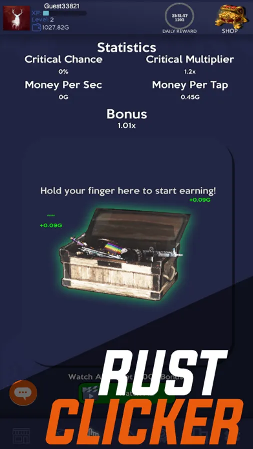 Rust Clicker is an idle Rust case opener - Skins Simulator game you will love! Build up your inventory, play a simple case clicker and earn rust skins. Level up your clicker and collect all achievements. Open unique rust cases in our case simulator. Join to the jackpot to have a chance win a lot of new items and more!