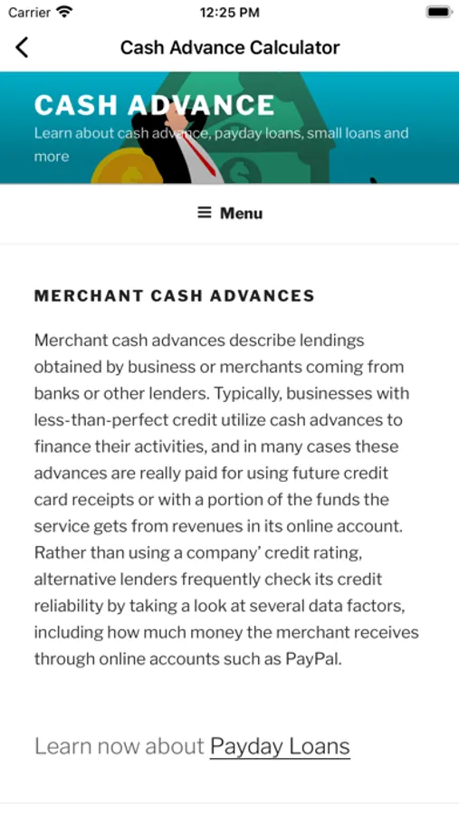 $ Merchant Cash Advances - Merchant cash advances describe lendings obtained by business or merchants coming from banks or other lenders. Typically, businesses with less-than-perfect credit utilize cash advances to finance their activities, and in many cases these advances are really paid for using future credit card receipts or with a portion of the funds the service gets from revenues in its online account. Rather than using a company' credit rating, alternative lenders frequently check its credit reliability by taking a look at several data factors, including how much money the merchant receives through online accounts such as PayPal.
