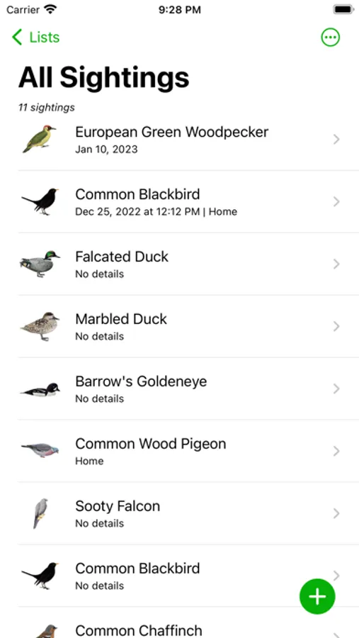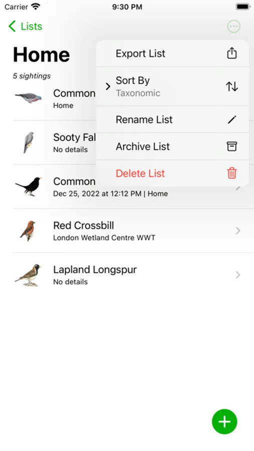 Life List is a smart and convenient place to keep your bird lists. Keep a garden list, a year list, a patch list – it's up to you!