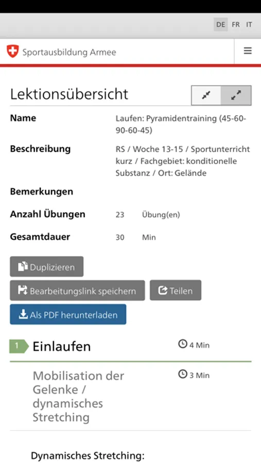 Das Kompetenzzentrum Sport der Armee (Komp Zen Sport A) trägt die Verantwortung für die Sportausbildung der Schweizer Armee. Im Rahmen der Möglichkeiten sollen die Angehörigen der Armee die notwendigen körperlichen Fähigkeiten für den militärischen Einsatz in Bezug auf ihre Funktion erhalten. Zudem soll Sport als Ausgleich zum militärischen Alltag erlebt werden.
