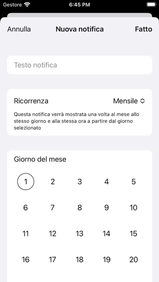 Hai bisogno di un promemoria ad intervalli regolari? Nessun problema, con Notificator potrai impostare dei promemoria ricorrenti con cadenza oraria, giornaliera, settimanale o mensile.