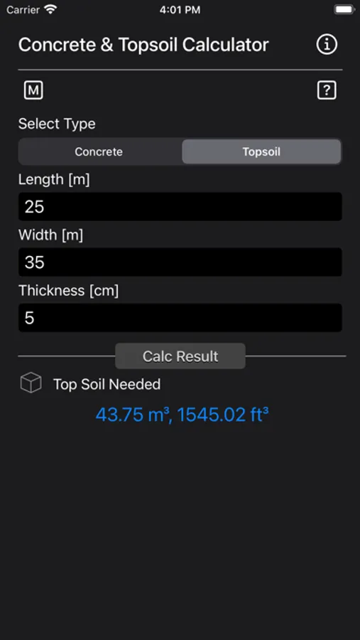 Topsoil calculation: