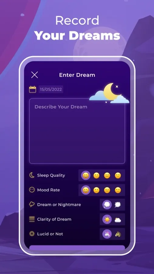 Mark each dream by your feelings, context and type. See overall analytics of your dreams.