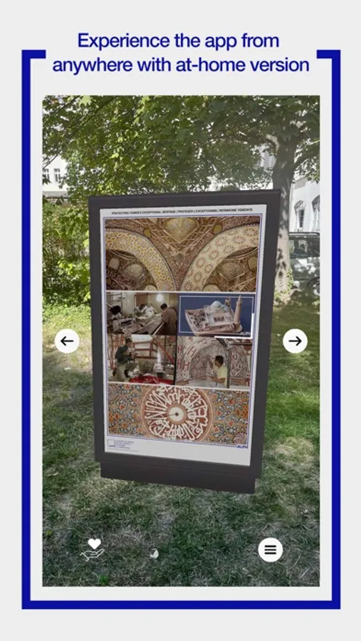 This app contains both a location-based mode that can be used at the physical exhibition, as well as an at-home, standalone mode that can be experienced anywhere. Download the app and scan the augmented reality markers on the panels to reveal extra information including 3D models of protected cultural locations and videos.