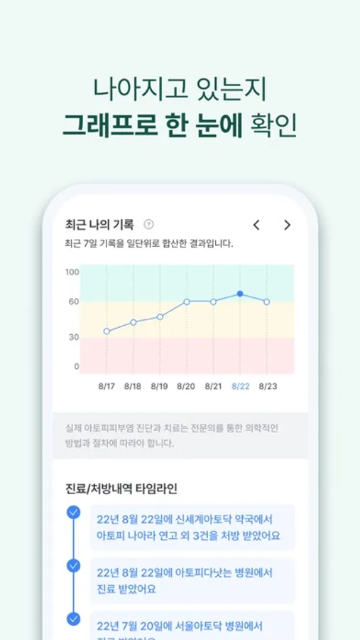 - 아토닥을 활용하여 지난 경과를 의사에게 쉽게 설명할 수 있어요