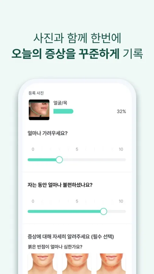 - 부위별로 나의 증상을 사진과 함께 기록할 수 있어요