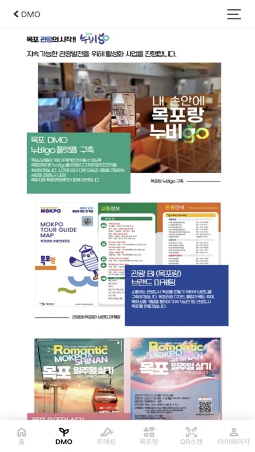 ‘목포랑 누비go’는 2020~2023년 지역관광 추진조직 DMO 사업에서 선정된 (재)목포문화재단의 목포관광 활성화를 위한 어플리케이션이다. 목포는 4대관광 거점도시로써 Zero Waste, Net Zero 등의 ESG관광을 선도하고 일주일 살기 및 목포관광 트레킹 등 다양한 관광사업을 매년 지속사업으로 추진중이다. 무궁한 매력을 가진 목포를 국내·외 관광객에게 알리기 위한 사업으로, 목포랑 누비go 앱은, 친환경 활동을 통한 포인트 적립기능, 원도심지역 카페 할인쿠폰, 트레킹 지도, 만보기, 다양한 목포의 먹을거리와 즐길거리를 직관적으로 보고 느낄 수 있도록 제작되었다.