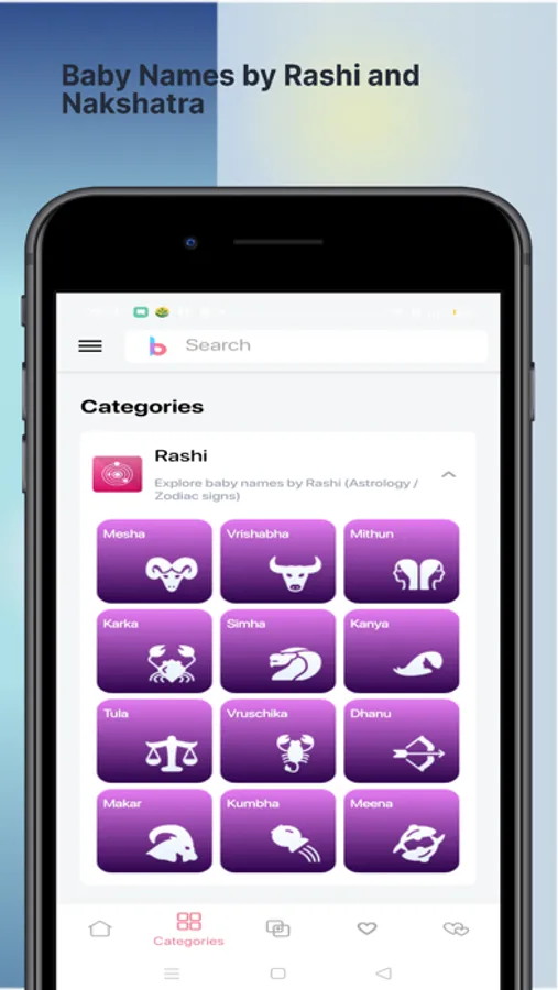 The app also provides baby boy names and baby girl names by Rashi (Zodiac Sign), Nakshatra, Numerology & Astrology.