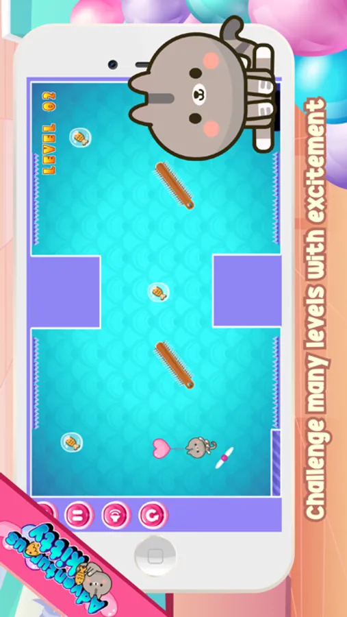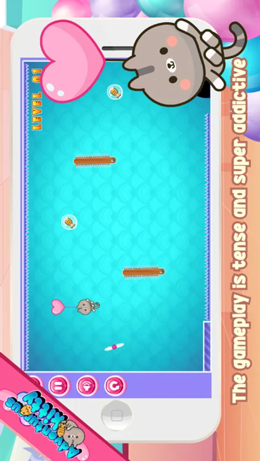 Use the propeller to move the balloon that Holds kitty’s body around the Screen,