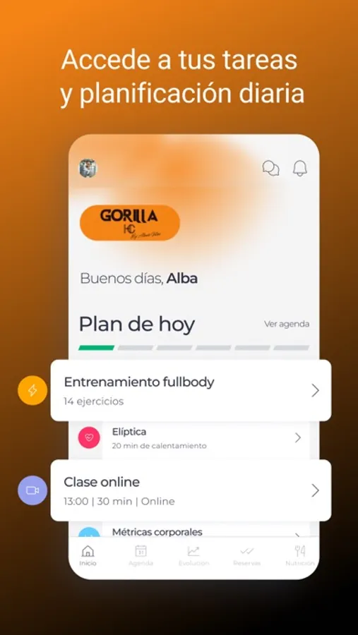 Si no puedes entrenar en Gorilla Health Club, recibe todas las planificaciones y dietas elaboradas por el equipo de manera 100% personalizada a través de una app, para que entrenes donde quieras.