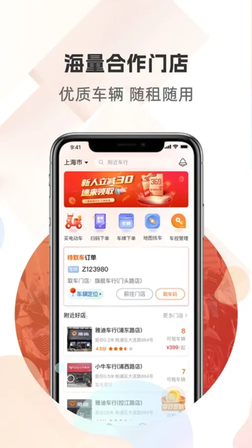 骑圈是一个非机动车一站式的综合服务平台,针对配送行业的骑手用户,提供预约租车、扫码换电和一键维保三大核心产品业务。