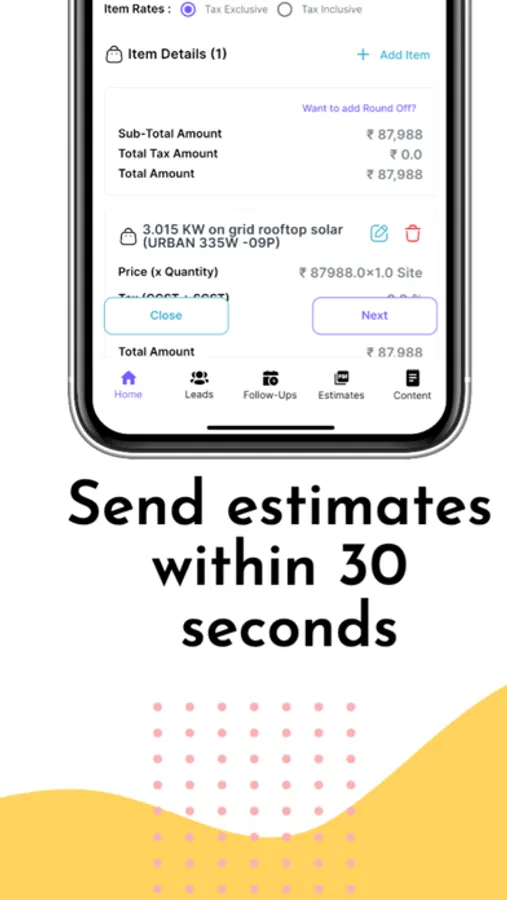 1. Send a beautiful estimate to your customer within 30 seconds directly on their WhatsApp