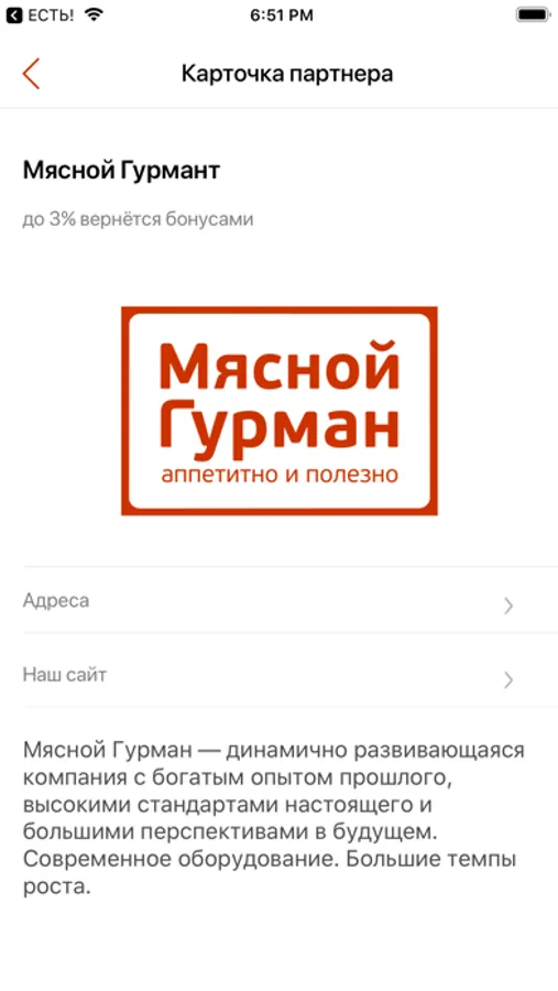 Добро пожаловать в бонусную программу лояльности бренда «Мясной Гурман». Теперь в наших магазинах Вы сможете не только приобрести вкусные колбасы и мясные деликатесы, но и получить приятные бонусы и скидки в нужное время, в нужном месте.