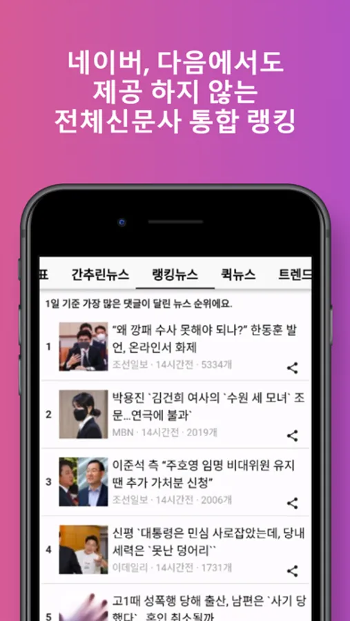 전 언론사 기준 가장 댓글이 많이 달린 랭킹 뉴스를 제공 해드려요.