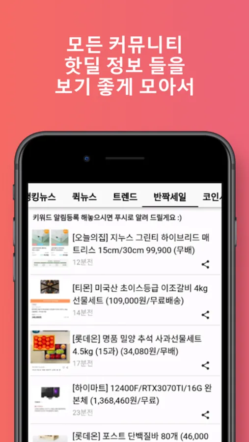 키워드 알림 등록 해놓으시면 뽐뿌같은곳에 핫딜뜰때 푸시로 알려 드릴게요.
