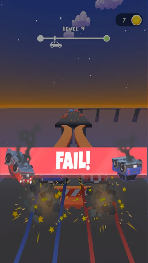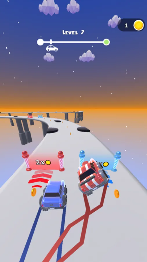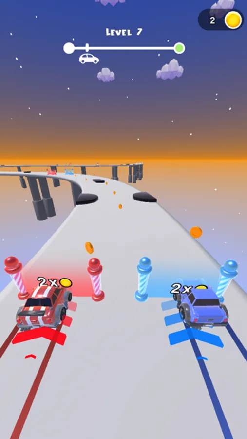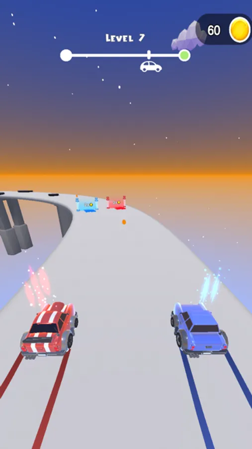 With basic swipe controls, guide your stunt cars to glory. Beware of traps and obstacles on the way and make sure to grab all coins and boosters.