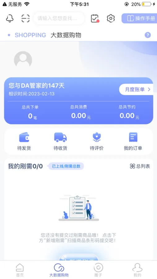 “DA管家”是大盈若冲公司运营的第四代全球大数据商务平台,致力为用户提供大数据、元宇宙等行业资讯、打造具有共同爱好的社交“圈子”,为用户提供便捷的即时沟通工具。同时开设大数据购物频道,用户通过在线提交刚想需求清单即可体验到颠覆性的购物体验。