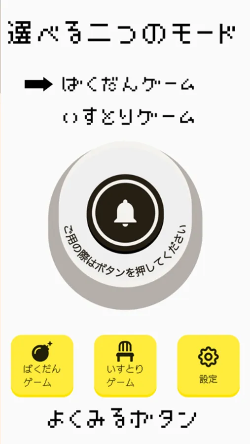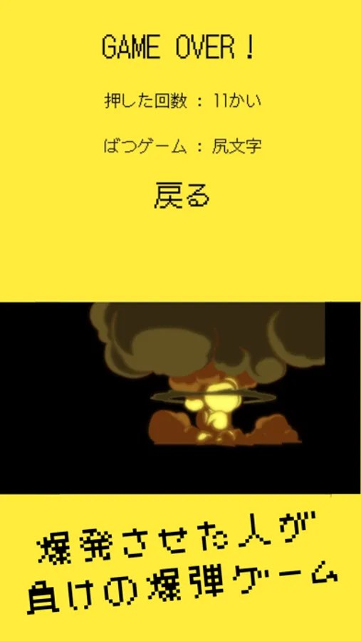 ある回数を押すとボタンが大爆発します。複数人で順番にボタンを押して爆発させた人が負けのシンプルなモードです。