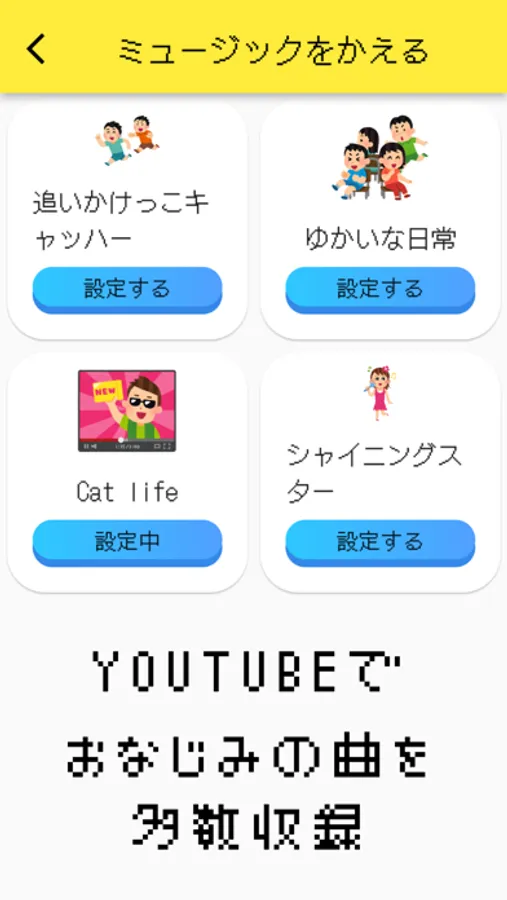 椅子取りゲームをするときに使用することができます。選んだ曲がランダムな間隔でストップします。