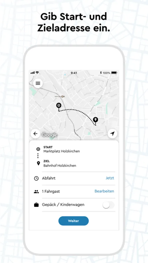 Wir zeigen dir sofort, welches Fahrzeug dich wann und wo abholen kann.