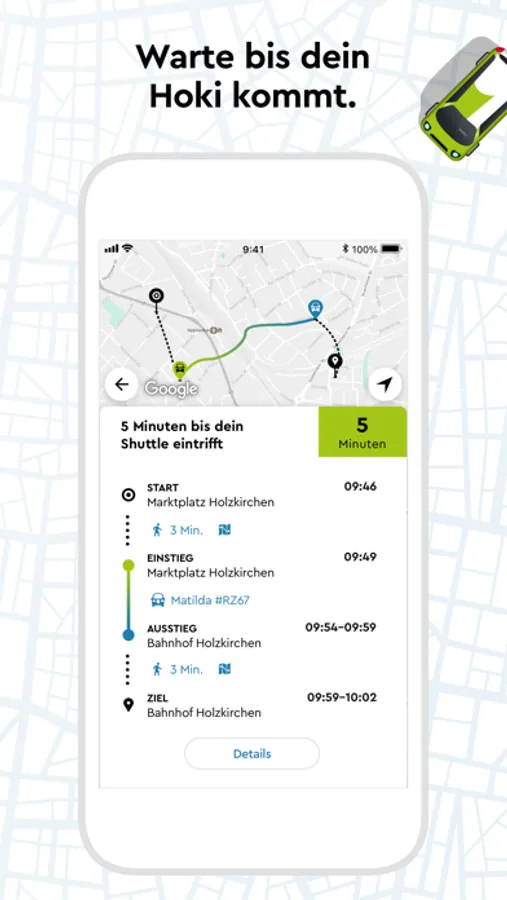 Mit unserem Hoki wird Mobilität noch smarter und flexibler. Per App oder Telefon kannst du dir deine Fahrt bequem und individuell buchen, ganz ohne Fahrplan.