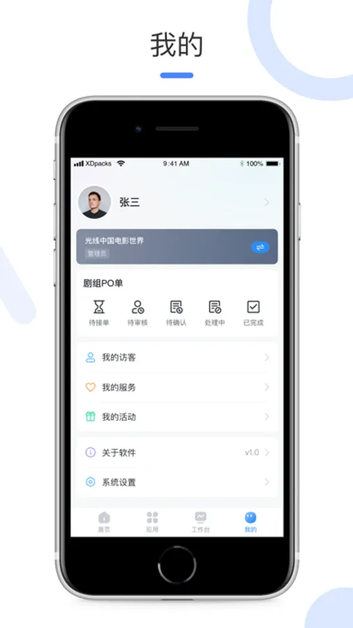 优影通App,是依赖于扬州影视基地运营平台,定位于满足影视基地建设,为小镇运营人员、入驻企业、入驻剧组人员提供舒适便捷的信息化服务功能。APP搭配基础园区物业功能、特色影视行业生态功能,如剧组入驻、PO单、物业服务、场馆预约等。