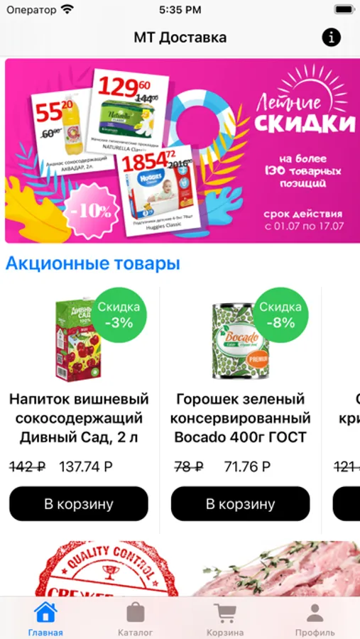 Клиентам нашего интернет-магазина предлагается широкий ассортимент продуктов питания, бытовой химии, товаров личной гигиены, текстильной продукции известных производителей и торговых марок.
