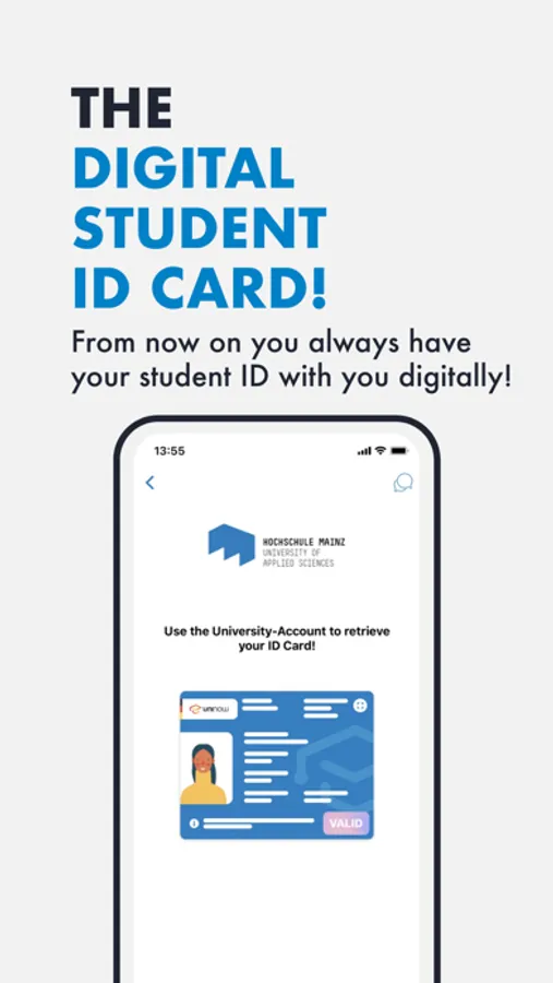Digital student ID: From now on, you can access your digital student ID directly via the UniNow app. In addition to the digital student ID, the library card and the European Student Identifier, you also have the semester ticket in the app.