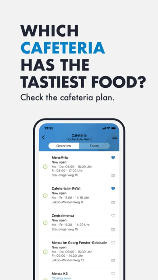 Everyday university life is exhausting enough, don't waste your time fighting your way through the confusing portals of the university. Mainz Campus2Go offers you everything you need to start every day well prepared for your studies, no matter if you just started your studies or if you are already in your master studies.