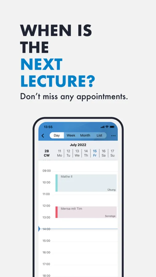 Calendar: The best thing to do is to start managing your schedule with Mainz Campus2Go calendar. This way, you'll have an overview of all your appointments and never miss a lecture or other important events again.