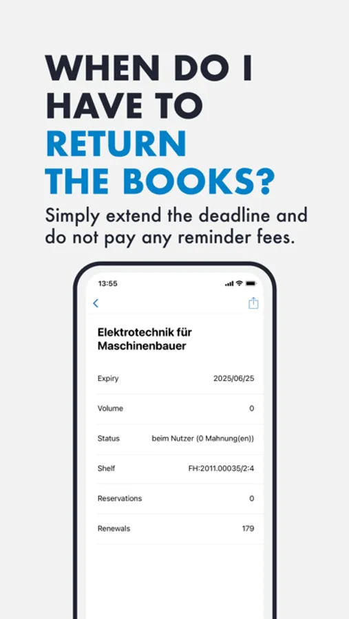 Library: Never pay the late fee again! With Mainz Campus2Go, you can always keep track of your books' loan deadlines and conveniently renew your books with just a few clicks.