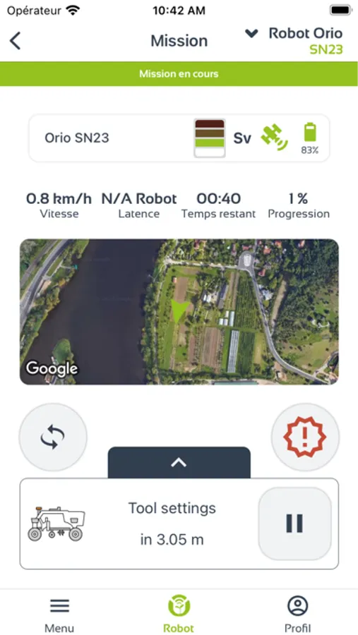 When you are connected to the robot via wifi, Naïo Companion allows you to control the robot remotely using your smartphone. You can easily adjust your robot's settings in real time and make quick decisions to improve its mission performance.