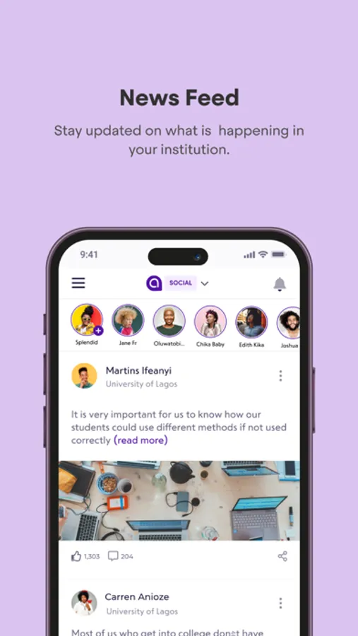 Newsfeed: Upload/Share and read latest happenings around the campuses.