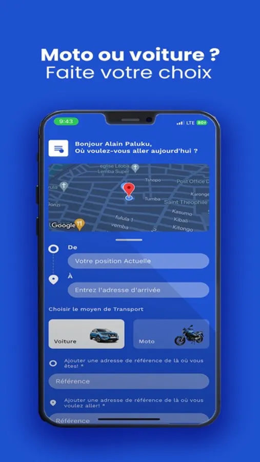 L’utilisation de TEX reste très simpliste, TEX est tout d’abord une plateforme permettant aux passagers de réservé leur moyen de transport (car ou moto) en spécifiant le lieu d’arriver et les conditions du véhicule