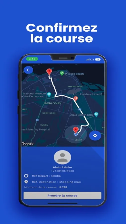 Comment cela se passe-t-il ? Un client crée son compte via son numéro de téléphone ainsi il reçoit le code OTP pour confirmer la création de son compte et par la suite il atterri sur une carte map où il pourra via juste un clic sélectionner un lieu et ajuster la position exacte de l’endroit où il veut aller. Le système quant à lui se charge de calculer le prix trajet suivant qu’il ait sélectionné car ou moto puis lui afficher les différentes options de paiement (Mobile Money et CB). Après avoir sélectionner un moyen de paiement il lance sa requête notre API le reçoit et se charge de call la bonne API si mobile Money sélectionner il le call, si CB sélectionner il le call aussi ensuite renverra une