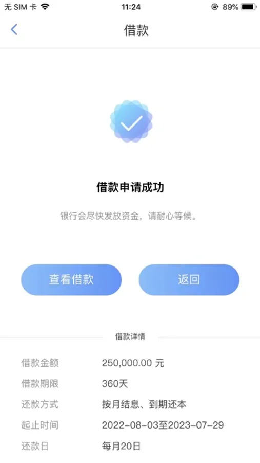 3.提款申请,支持借款人根据可借额度发起提款,确认提款后系统发起授信审批,审批通过后放款。