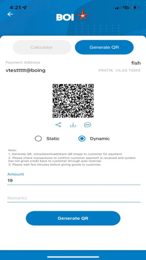 • In app calculator which helps merchants to calculate transaction amount and further generate QR for the particular transactions.