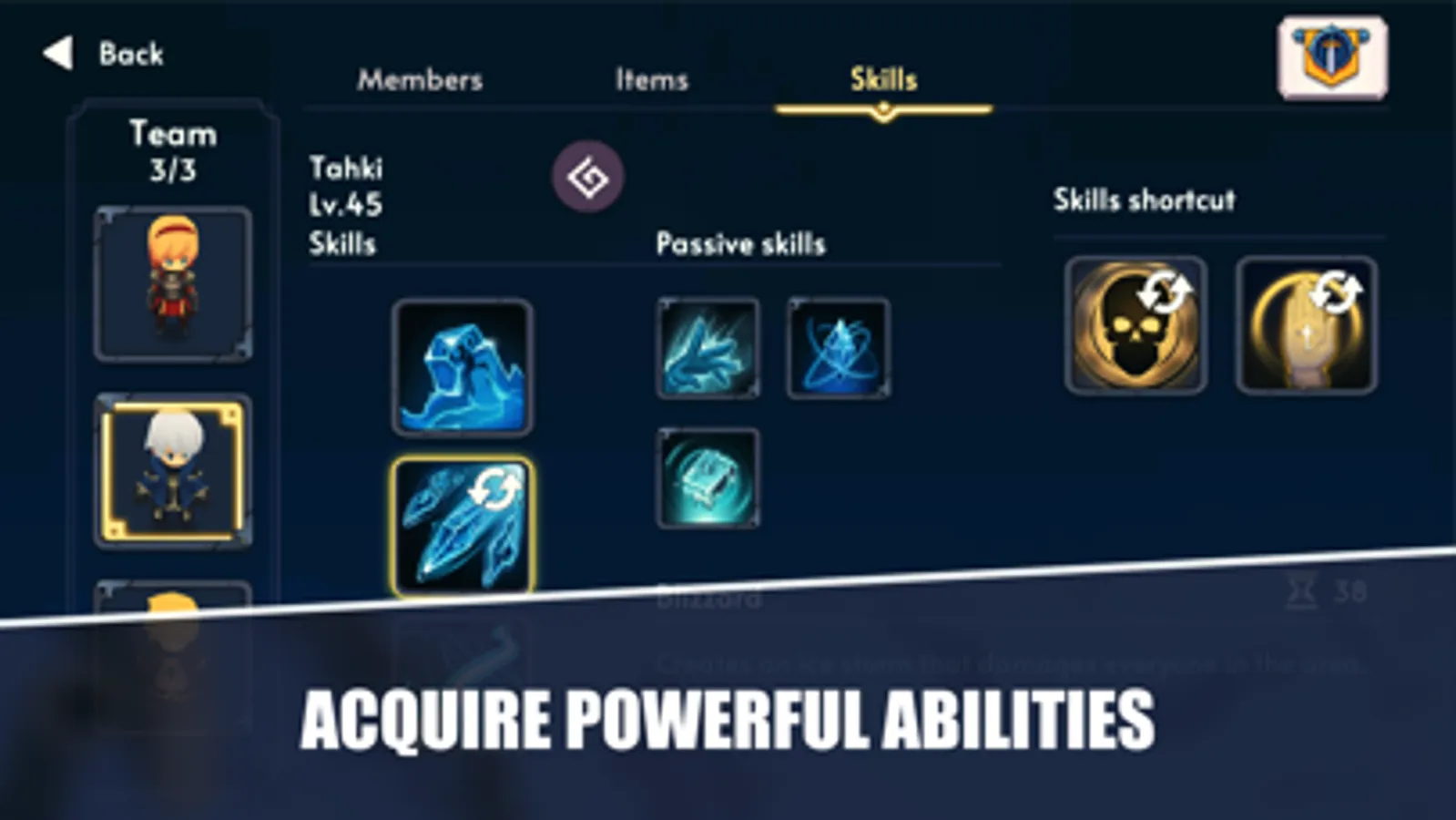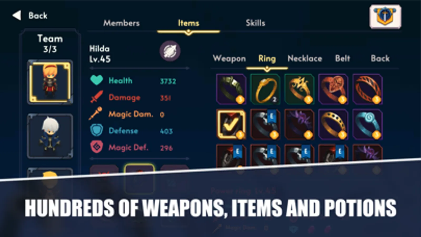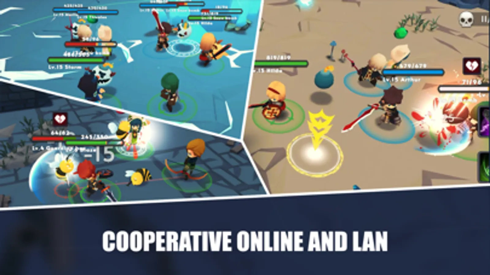Choose from 15 unique heroes to fight in the arenas or explore the dungeons.
