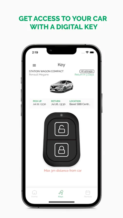 After completing our easy verification process, simply start your rental and GO! Our digital key gives you maximum flexibility, access your car even without internet connection.