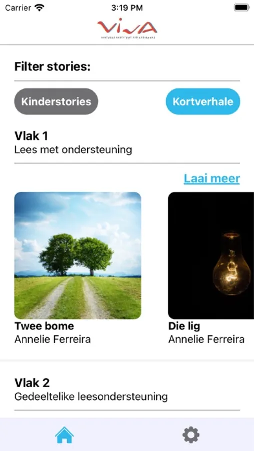 VivA’s Lees-en-luister-app (read-and-listen app), is an Afrikaans reading app that is aimed at helping readers improve their Afrikaans reading and writing skills. It is suitable for users of all ages and readers with varying reading abilities.