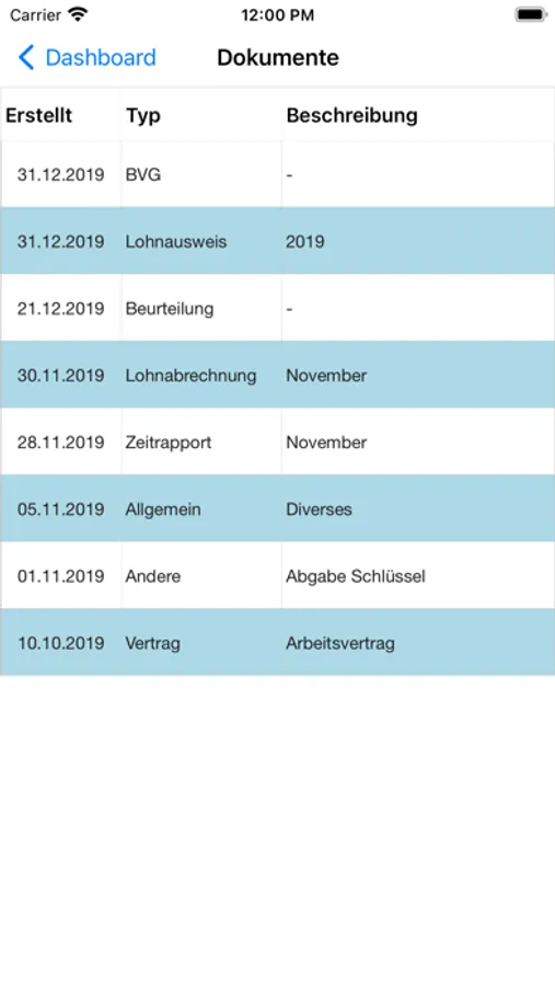 Alle Lohnabrechnungen, Lohnausweise, BVG-Ausweise, Zeitrapporte, Verträge, Mitarbeiterbeurteilungen usw. an einem Ort - pro Arbeitgeber gruppiert.