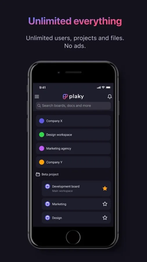 The only app that offers UNLIMITED users, projects, tasks & files.