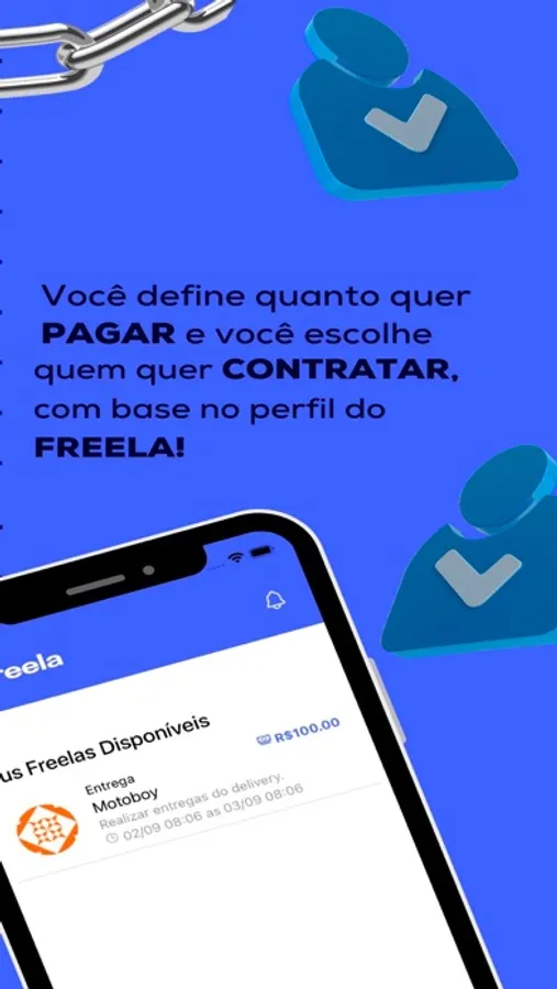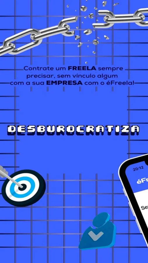Nunca foi tão fácil fazer um freela Faça sua renda extra ou até mesmo toda a sua renda mensal com o éFreela te dá liberdade financeira com vagas para trabalhos temporários que encaixam na sua rotina. Agora é a hora de juntar aquela graninha e ir em busca do seu propósito; Liberdade Geográfica trabalhe onde e quando quiser, viajou e a grana está curta? Com o éFreela você trabalha onde e quando quiser. Entre para a nossa plataforma e dê um match no serviço com segurança, procure qualificar seu perfil na plataforma, em busca de fazer freelas com maiores recompensas.