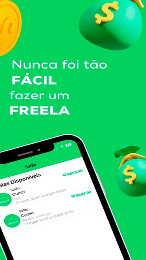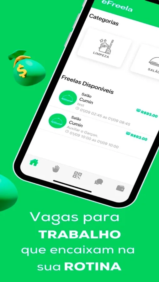 Nunca foi tão fácil fazer um freela Faça sua renda extra ou até mesmo toda a sua renda mensal com o éFreela te dá liberdade financeira com vagas para trabalhos temporários que encaixam na sua rotina. Agora é a hora de juntar aquela graninha e ir em busca do seu propósito; Liberdade Geográfica trabalhe onde e quando quiser, viajou e a grana está curta? Com o éFreela você trabalha onde e quando quiser. Entre para a nossa plataforma e dê um match no serviço com segurança, procure qualificar seu perfil na plataforma, em busca de fazer freelas com maiores recompensas.